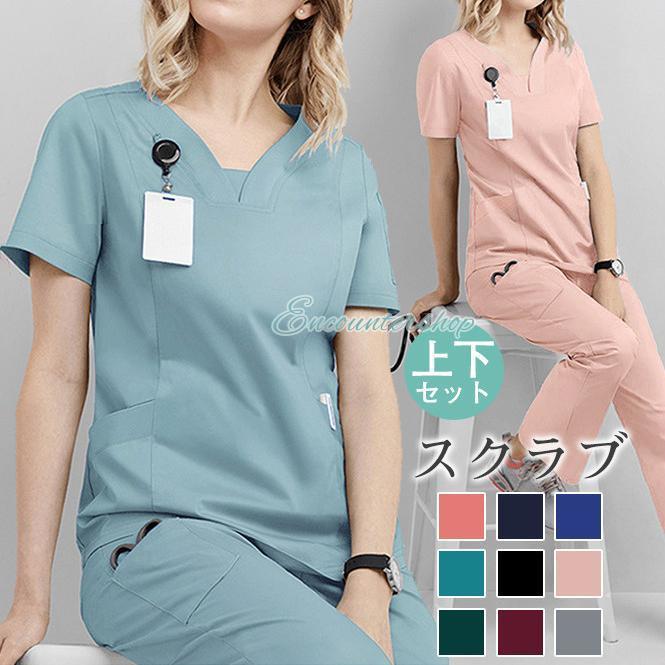 スクラブ セットアップ 上下セット 白衣 レディース 半袖 ドクター 歯医者 ユニフォーム 美容 サロン ナース服 医務衣 介護施設