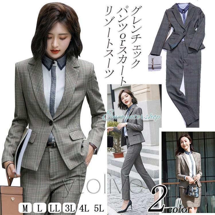 スーツ レディース パンツスーツ スカートスーツ ビジネス OL テーラード チェック柄 女性 面接 大きいサイズ