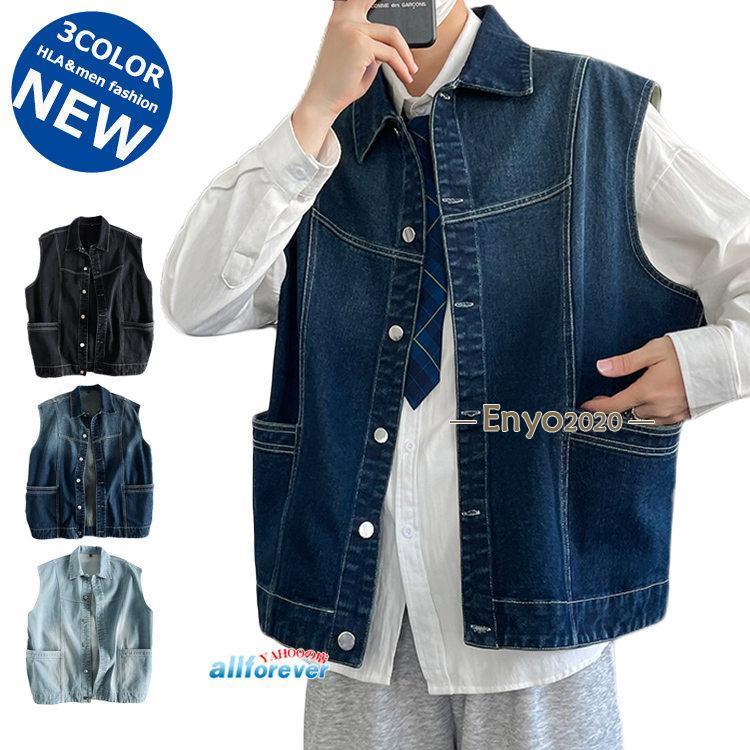 デニムベスト メンズ チョッキ ノースリーブ デニム ベスト メンズ ジレ 無地 羽織 サマーベスト 春夏 お兄系