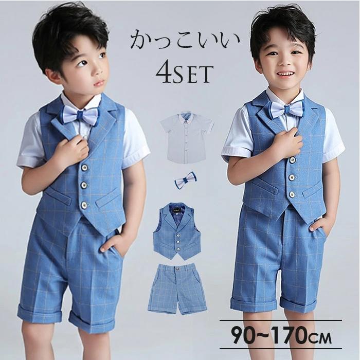 4点セット 子供 スーツフォーマル 男の子 夏 子供スーツ キッズ ワイシャツ ハーフパンツ 入学スーツ 入園スーツ 半袖シャツ 蝶ネクタイ付き 夏服