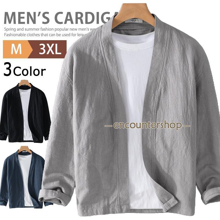 羽織 着物 メンズ 男性用 浴衣 和服 甚平風 作務衣 リネン カーディガン アウター ジャケット カジュアル おしゃれ 長袖 父の日
