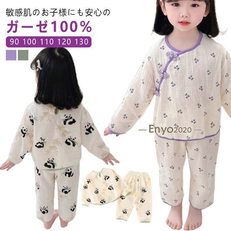 綿 春夏秋 ガーゼ パジャマ チャイナ風 ベビー 七分袖 長袖 夏用 子供 ガーゼ 上下セット コットン キッズ ルームウエア 男の子 幼稚園 保育園