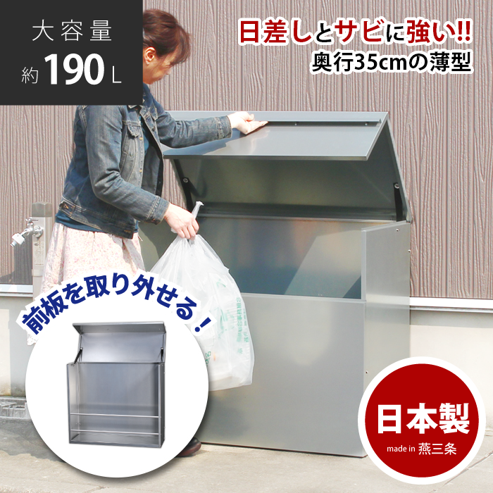 ダストボックス ゴミ箱 日本燕三条製 屋外 前板を外せる フタ付き ゴミステーション おしゃれ 幅90 シンプル 遠藤ワークス EX101-003