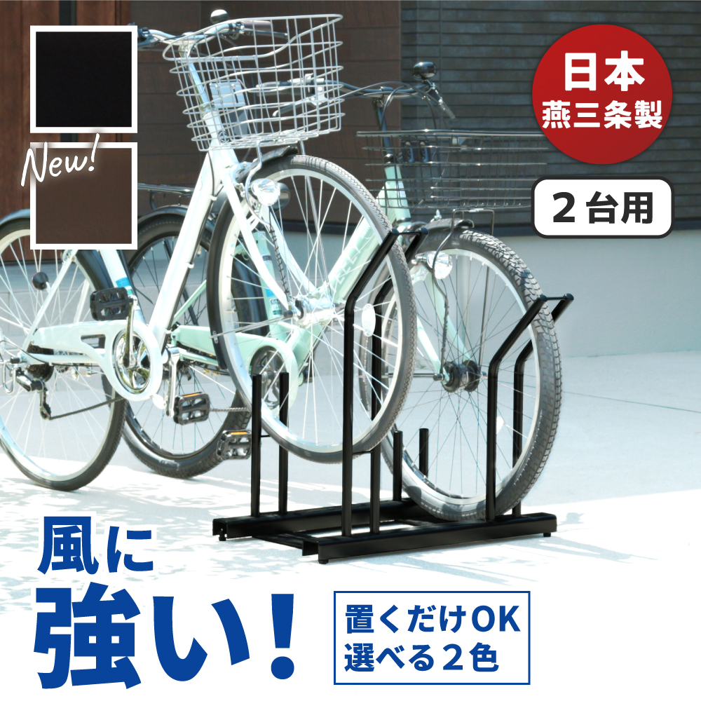 自転車スタンド 日本燕三条製 倒れにくい 置くだけ 頑丈自転車ラック 2台用 風に強い 黒 茶 収納サイクルスタンド EX201-02