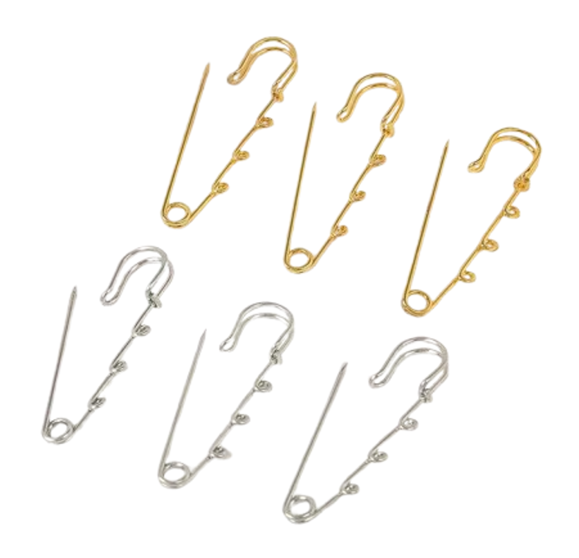 安全ピン カブトピン キルトピン 3カ所カン付き 55mm 1本 全2色 ブローチ金具 ハンドメイドパーツ スカーフ留め マフラー留め ショール留め