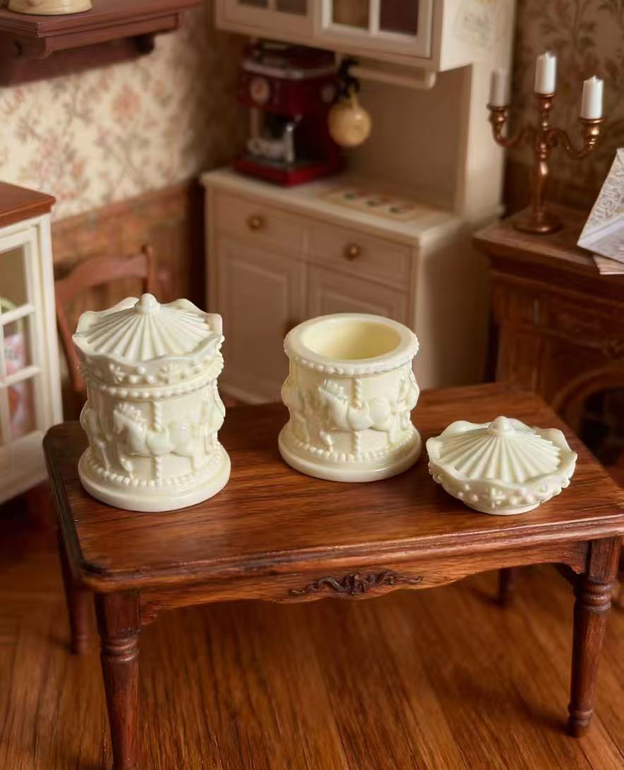 ミニチュア 木馬容器 蓋つき容器 1点 トールハウス用 容器 物入れ 可愛い デスクの小物 ミニチュアコレクション おしゃれな食器 模型手のひらサイズ