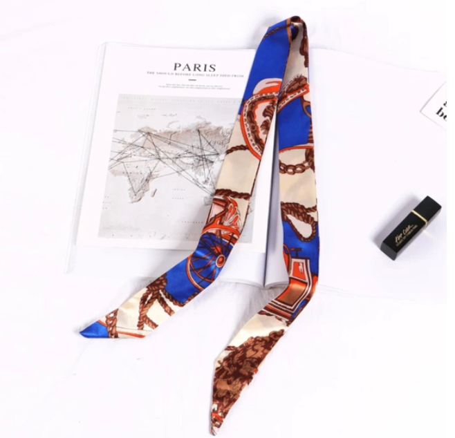 シルク調のツイリーバッグスカーフです。