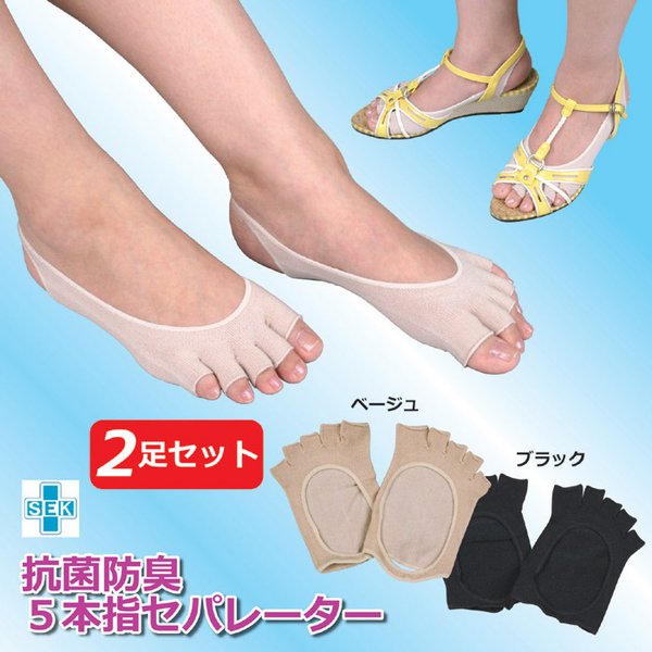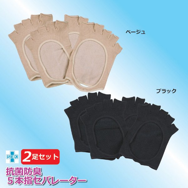 【商品名】抗菌・防臭5本指セパレーター 2足組 ベージュ