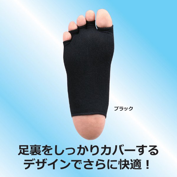 サンダルやパンプスを脱いだ時の汗によるベタベタや脂跡は見るだけでも不快なものです。歩いた後の床に残った自分の足跡を見るだけでうんざりしますよね。この特殊形状の5本指セパレーターを履いておくと、足裏や指の間の汗を吸い取ってくれるので、靴を脱いだ後もスッキリ。抗菌・防臭加工済みなのでニオイも抑えてくれます。形は足の甲部分が大きく空き、指先もオープンになってますのでパンプスはもちろん、指先が空いているサンダルでも目立ちにくくなってます。また、ズレを防止するようにカカト部分が空いた形状にしてます。もちろん土踏まず周囲の足裏はカバーしてますので汗をしっかりとキャッチ。オールシーズンタイプなので、冬のブーツなどにはこのセパレーターを靴下の下に履いていただくと、暖かい上にムレをしっかりと受け止めてくれます。