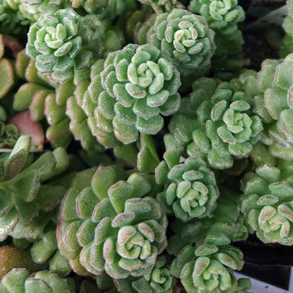 乾燥に非常に強いセダム類。日本では多肉植物として扱われますが、ヨーロッパでは庭園での利用が盛んで、セダムだけで構成するタペストリーガーデンなどもあります。葉の形や色のバリエーションも豊富で、乾燥する場所のグランドカバーに最適です。また、鉢植えにしても葉が鉢を覆うように伸び広がり、美しい株姿となります。スプリングワンダーは丸い葉を茎にぎっしりとつけ、バラの花のような愛らしい多肉植物です。秋には赤く紅葉します。夏の高温多湿が苦手なので涼しく風通しの良い場所で管理してください。