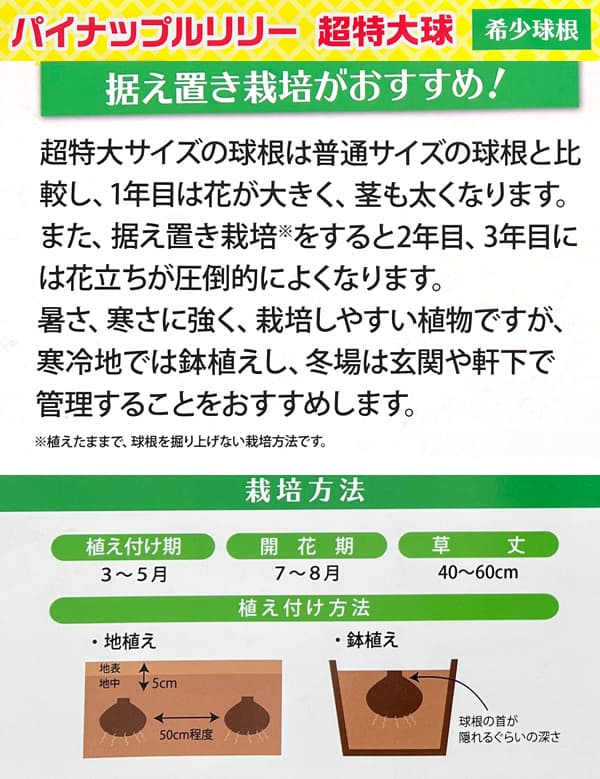 ユーコミス(パイナップルリリー) コモサ花色見計らい 超特大球 1球の栽培ガイド・