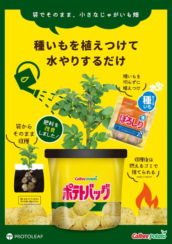 カルビーポテト株式会社と株式会社プロトリーフが共同開発したじゃがいも専用の培養土です。