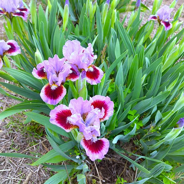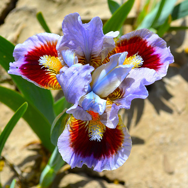 ゴーイングサークルズはライラック色の上品な花弁に中央は深い赤、赤い部分には葉脈に沿って白〜黄色の文様が入る、まるで蝶の羽のように美しい花姿です。
