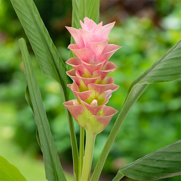 クルクマはインド〜タイ原産の熱帯植物。国内では鉢花として親しまれていましたが、花壇に植えると夏から10月頃まで次々に開花し、1つの花の開花期間が約1ヶ月と長く楽しめます。暑さが厳しいほど元気に育ちカラフルな花が楽しめるので、夏花壇に最適です。また、切花やアレンジメントにもおすすめです。簡単で育てやすいのでどなたでも手軽に楽しめます。栽培のコツは、肥料をたっぷり与えることです。