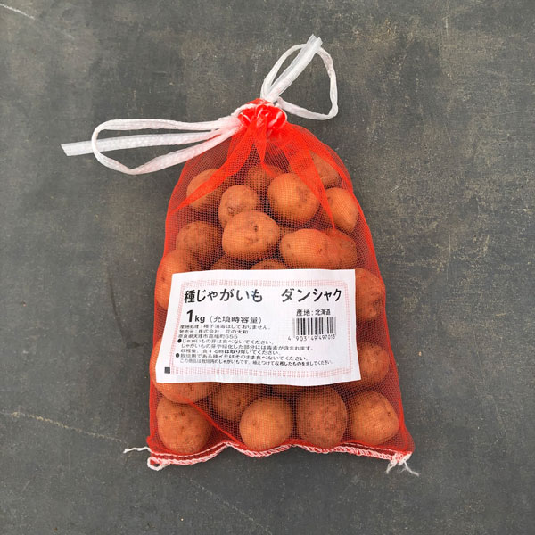 1袋1kg入りです。1kgの種芋数目安は10〜12個ですが、種芋の大きさにより芋数が前後します。多少芽が伸びた状態でのお届けとなる場合があります。