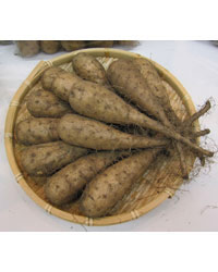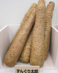 青森県南部地方の在来種「ずんぐりいも」から選抜した品種です。従来の長イモに比べ長さが短かく、とっくり型で尻が平たいのが特徴です。皮色はやや濃く、ネバリもやや強いナガイモです。収穫は従来品種より容易で家庭菜園向きです。
