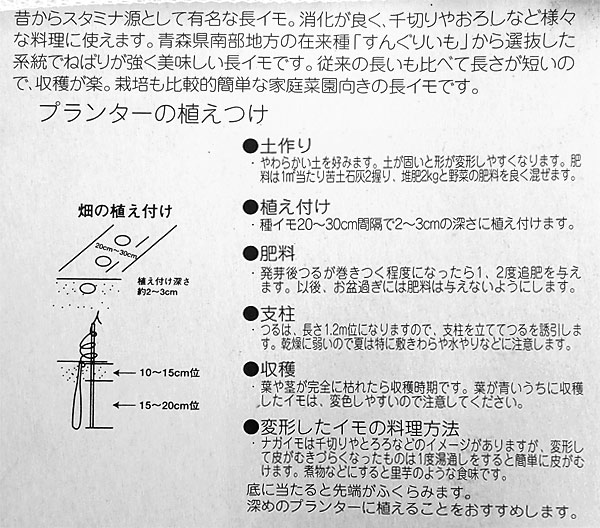 長芋(ながいも)の種芋 ずんぐり太郎2球入りの栽培ガイド・
