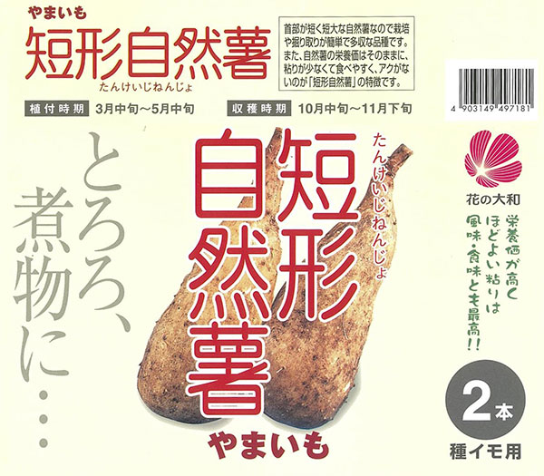 ネバリは1級品!ねっとりした食感がたまらない高級食材のやまのいもを栽培してみませんか?形状が長イモより短いとっくり型のイモ。自然薯の栄養価と風味はそのままに、栽培しやすくした品種です。ネバリが特に強く、おすすめです。