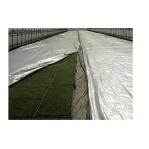 断熱性抜群で夜間の放熱を防ぎ、むれ苗、立ち枯れ病を防ぎます。高反射性で日中の異常な地温上昇を抑え、芽枯れ、枯死、浮き籾を防ぎます。適度な遮光性で徒長しすぎを防ぎます。防湿性があり土中水分を逃がしません。