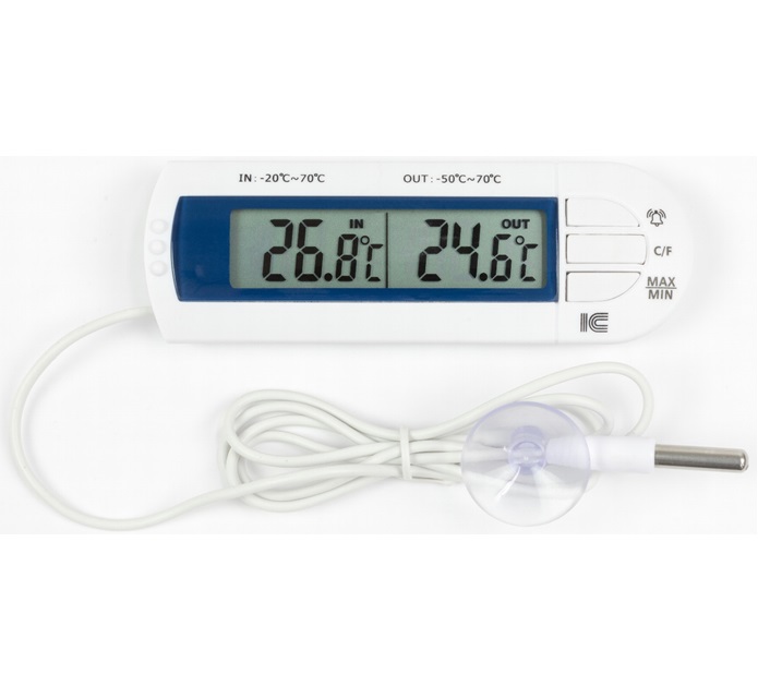 外部センサーは防水ですので、水温や冷蔵庫の中の温度を本体の表示で確認することが出来ます。