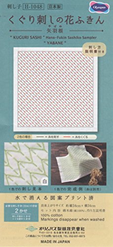 オリムパス製絲 刺し子花ふきん布パック くぐり刺しの花ふきん 矢羽根 H-1048 (白)