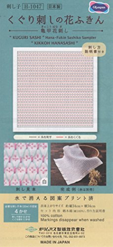 オリムパス製絲 刺し子花ふきん布パック くぐり刺しの花ふきん 亀甲花刺し H-1047 (白)
