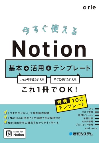 Notionの知識ゼロでも大丈夫 メモ、タスク、プロジェクト管理…あらゆるドキュメントを「すぐに」作成・管理できる (こんな方におすすめ) Notionをはじめて使う人 名前は知っているけど使ったことがない人 すぐにやめてしまった人 機能がよくわからない人 (本書の特長) 「基本の使い方」「もっと便利な使い方」を丁寧に解説。多機能なNotionのポイントをおさえる すぐに使える「テンプレート」特典付き。「Notionって何ができるの」「どれだけ便利なの」が直感的にわかり、機能を体験しながら学べる (特典) ?テンプレート10点 メモ/タスク管理/プロジェクト管理/習慣トラッカー/学習計画&ノート/日記/OKR管理/鑑賞録/SNS管理/レシピ ?レクチャー&ワークシート ?Notionと一緒に使える便利ツール リンク集 (目次) Chapter1 Notionを始めよう Chapter2 ページとブロックの使い方 Chapter3 ページを作ってみる Chapter4 データベースの使い方 Chapter5 Notionを使いやすくする Chapter6 みんなでNoti