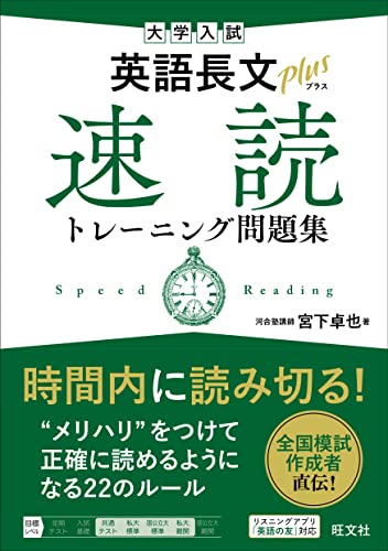 ● 22個の「スピードアップルール」によって 長文を時間内に読み切れるようになる 最近の大学入試問題から長文読解問題10題を厳選。著者が提唱する22個の「スピードアップルール」を通して 近年 語数がますます増加傾向にある難関-中堅私立大の入試長文を 時間内に正確に読み切るための「メリハリをつけた読解メソッド」が習得できます。 ● 段落ごとに「英文の読み方」がわかる 段落ごとに 問題英文と全文訳を見開きで提示。英文中の「重点的に読み取るべき箇所」や そこで適用すべき「スピードアップルール」が一目で分かり 英文を素早く正確に読み取るコツが見えてきます。 ● 詳細な解説と重要構文解説で 問題の解き方がわかる 各設問について 各選択肢の日本語訳とともに 正解の根拠となる本文中の箇所を詳細に解説。また 構文的につまずきやすい箇所については 文構造をビジュアル的に示し 問題を解く上でのポイントがよりわかりやすくなっています。 ● 無料音声で音読トレーニングができる 本書の音声は、公式アプリ「英語の友」でもお聞きいただけます。詳しくは、公式サイト(https://eigonotomo.co