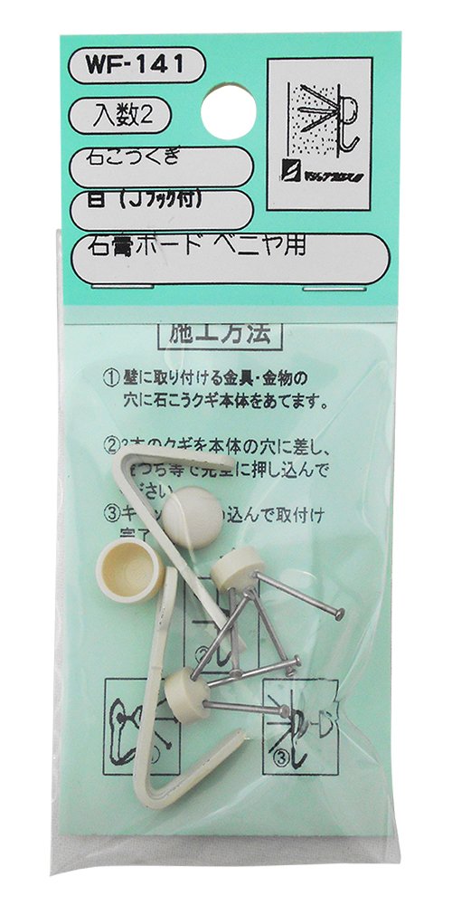 和気産業(Waki Sangyo) 石こうくぎ Jフック付 2セット 白 石膏壁 賃貸 針穴 WF-141