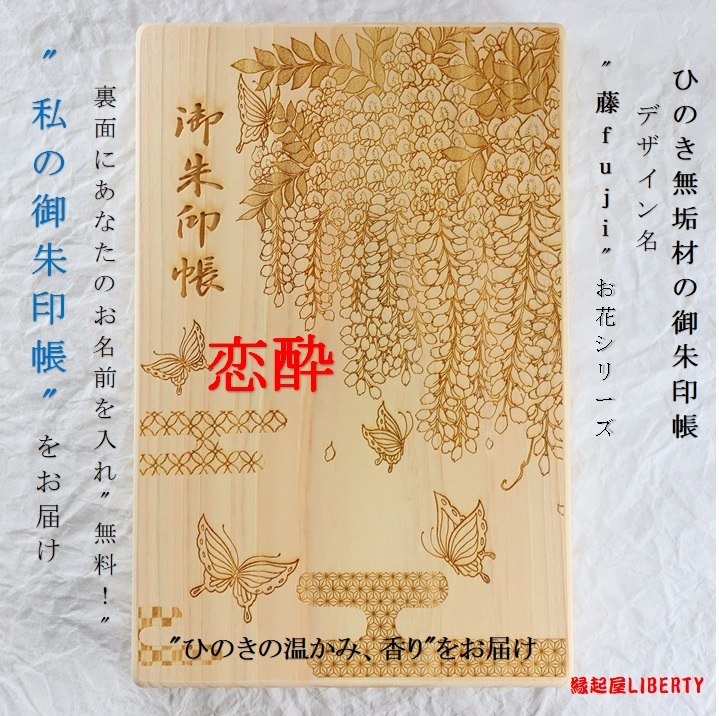 御朱印帳「藤-fuji」檜 ひのき 木製 和紙 ジャバラ 優しさ 歓迎 恋 忠実 母の日 満願 女子旅 ほっこり 御乗印帳 敬老の日 母の日 父の日 お名前 癒やし