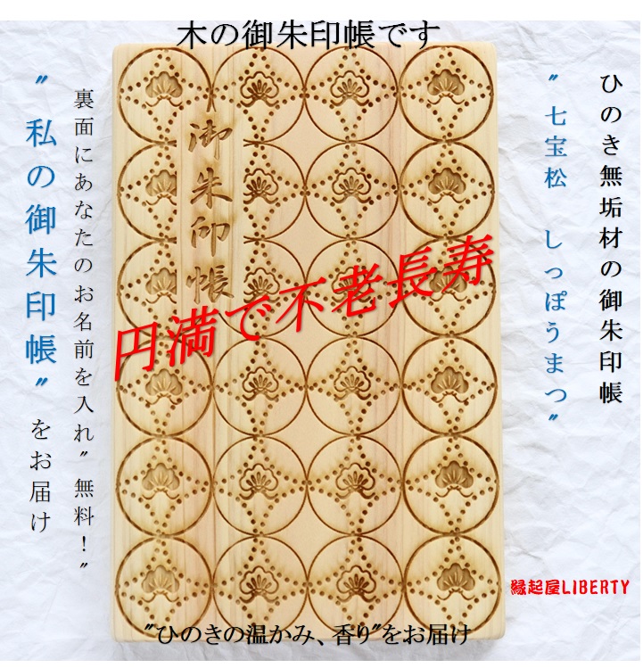 御朱印帳「七宝松」和柄 木製 檜 ひのき 桧 和紙 ジャバラ 円満 母の日 吉祥 パワースポット 満願 女子旅 ほっこり ギフト プレゼント 敬老の日 一粒万倍日