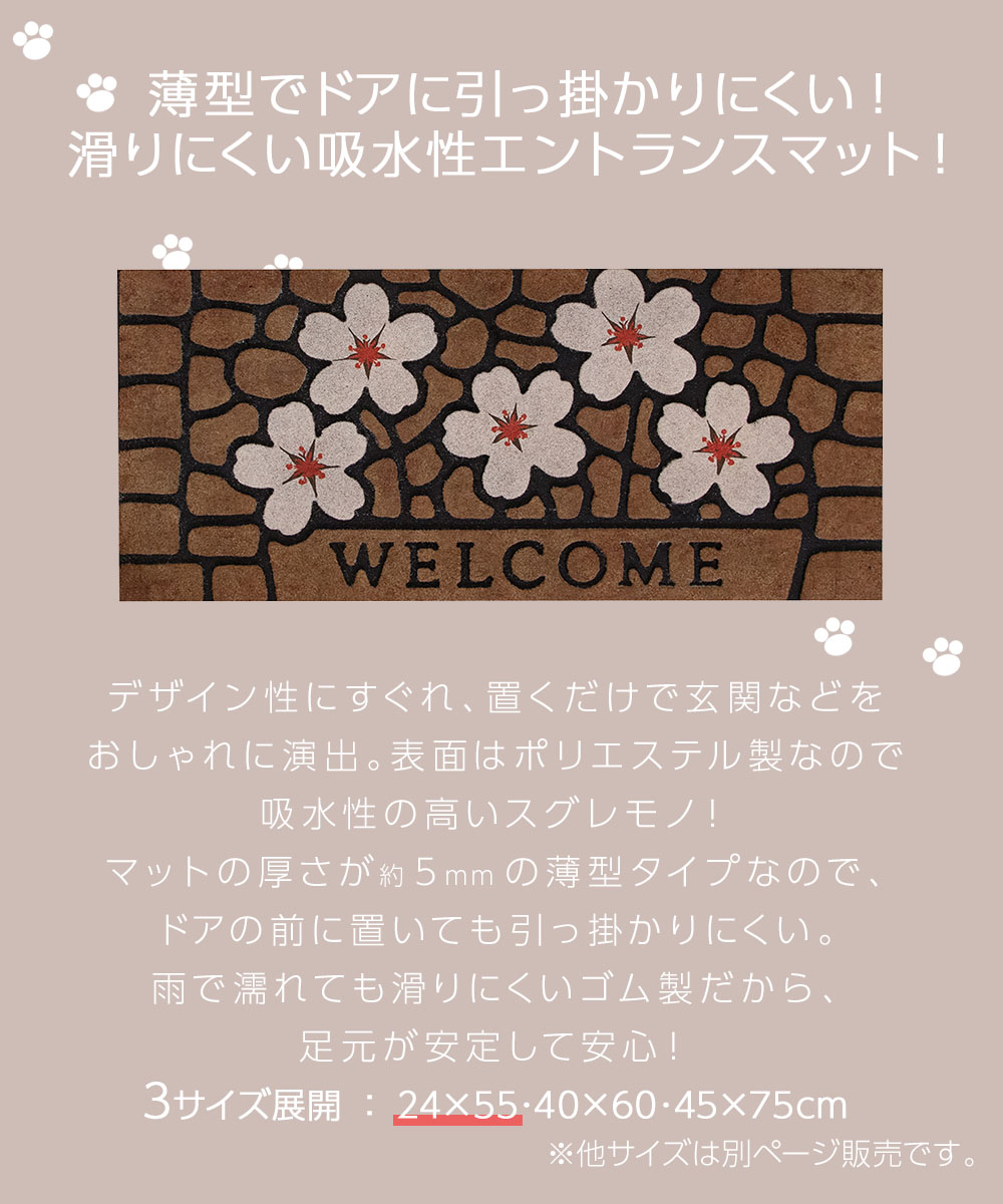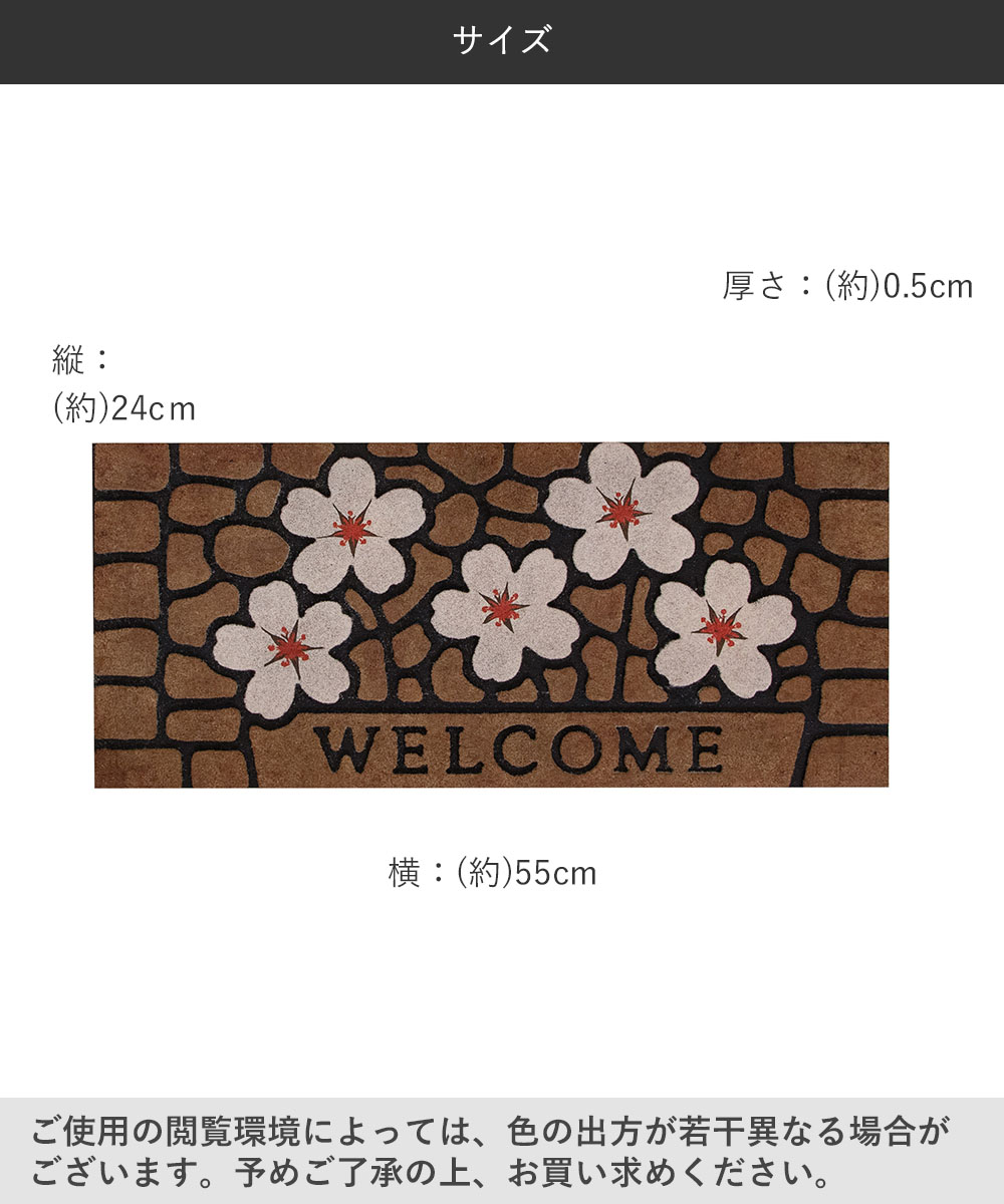 ・本製品は家庭用玄関マットです。材質の特性上、温度変化等により多少サイズに伸縮が生じます。