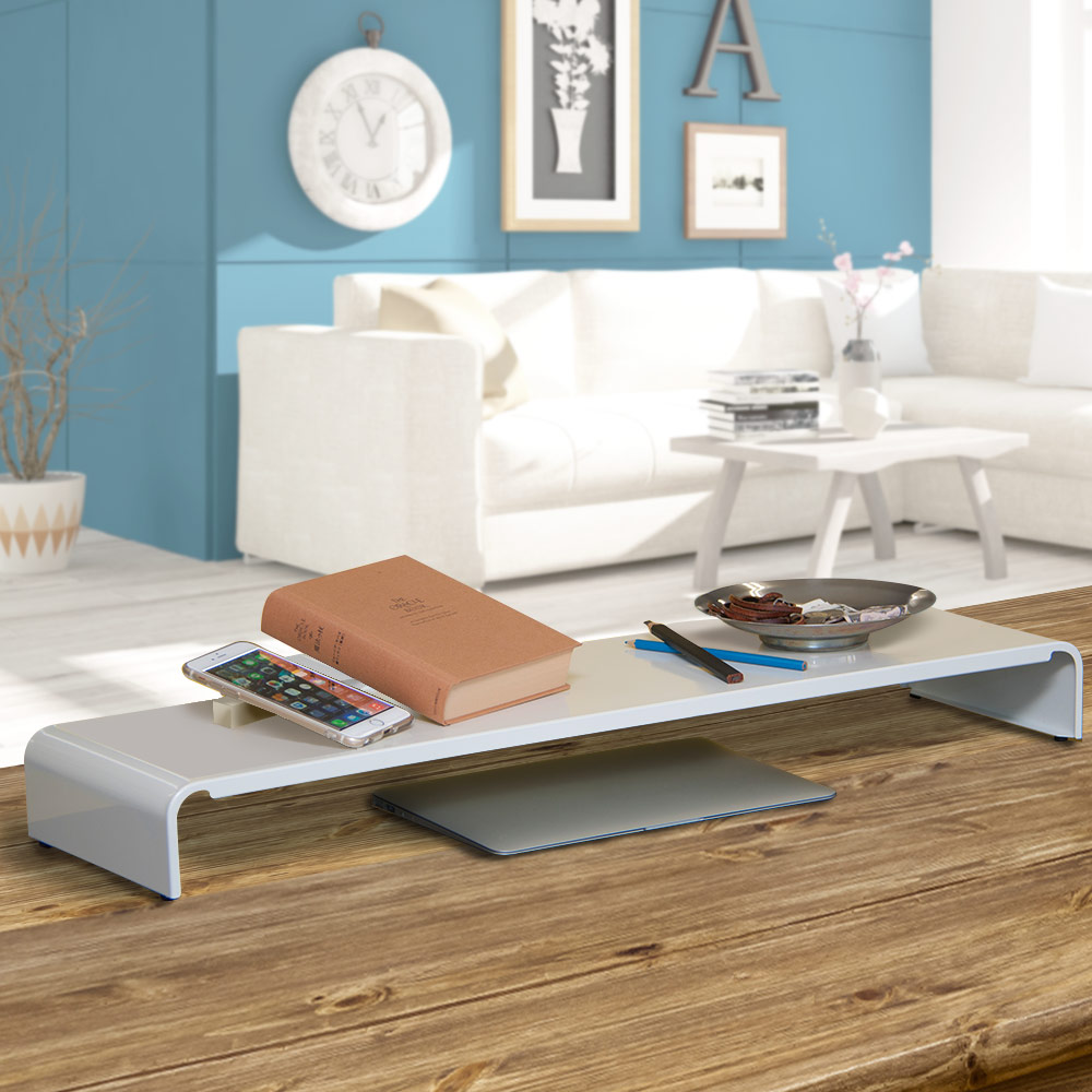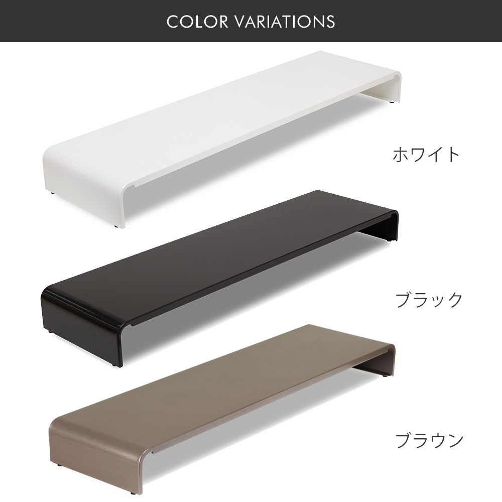 | モニターラックとしてだけではなく、モニター前のラックとして使ったり、サイドラックとして使ったり、アイデア次第で使用シーンは広がります。 | ブラックとホワイトの2カラーのスチール表面には、パールマイカ塗装を施しております。天然パールと同じ多重反射で柔らかいキラキラ感があり、鮮やかな光沢を放ちます。 | |