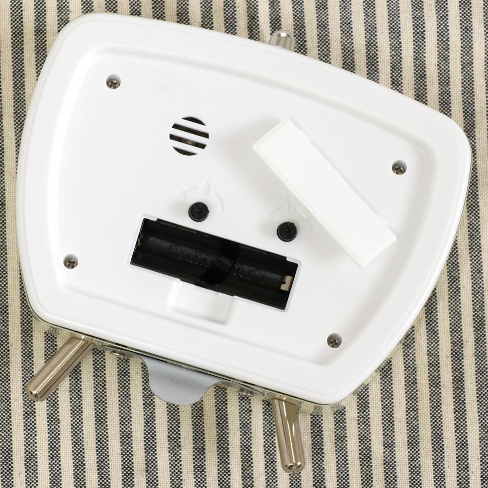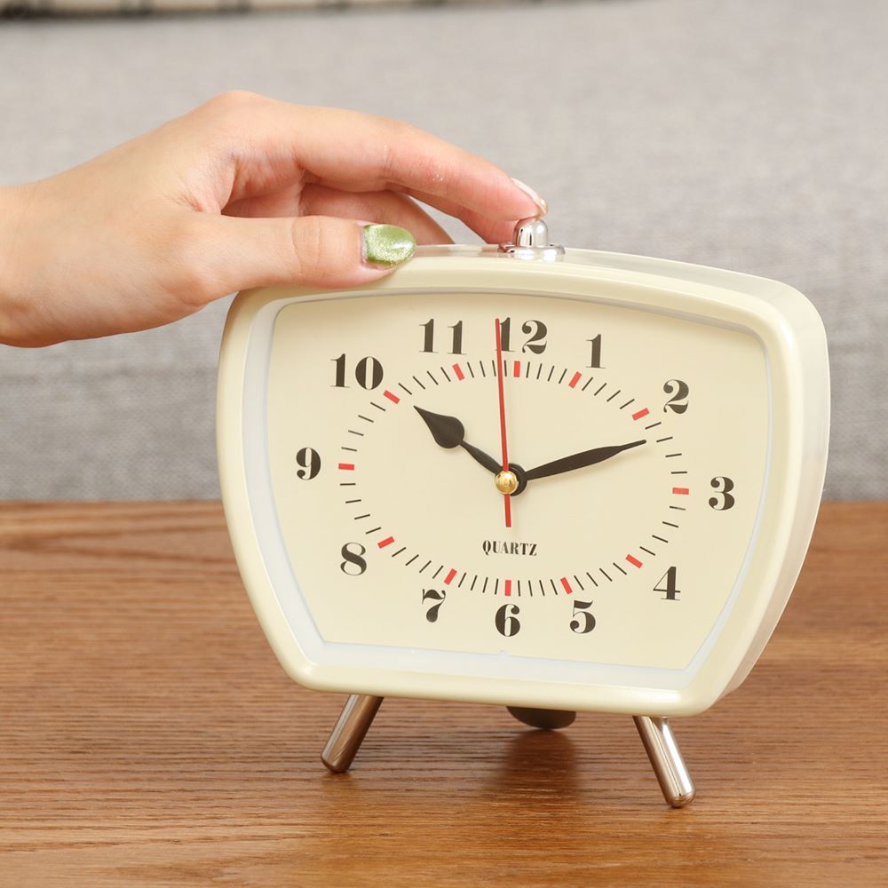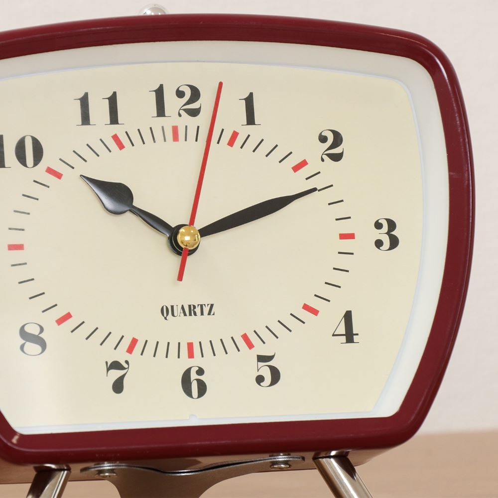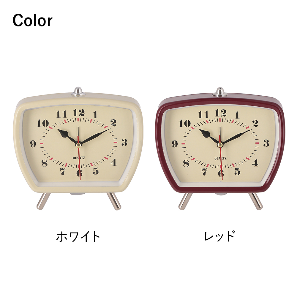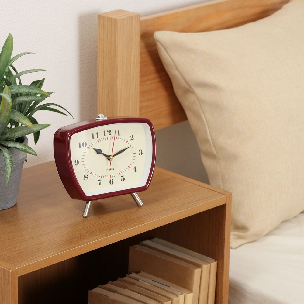 フォルムが可愛いレトロ風な置時計。昔のテレビのようなスクエアフォルムに、アメリカンレトロな雰囲気を醸し出すカラーリングがおしゃれなデザインです。