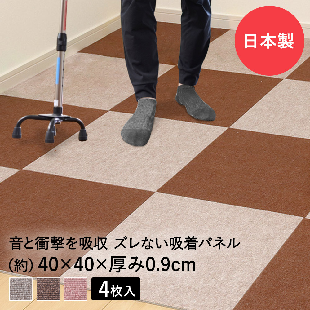 ぴたっと吸着、ズレにくいタイルカーペット。