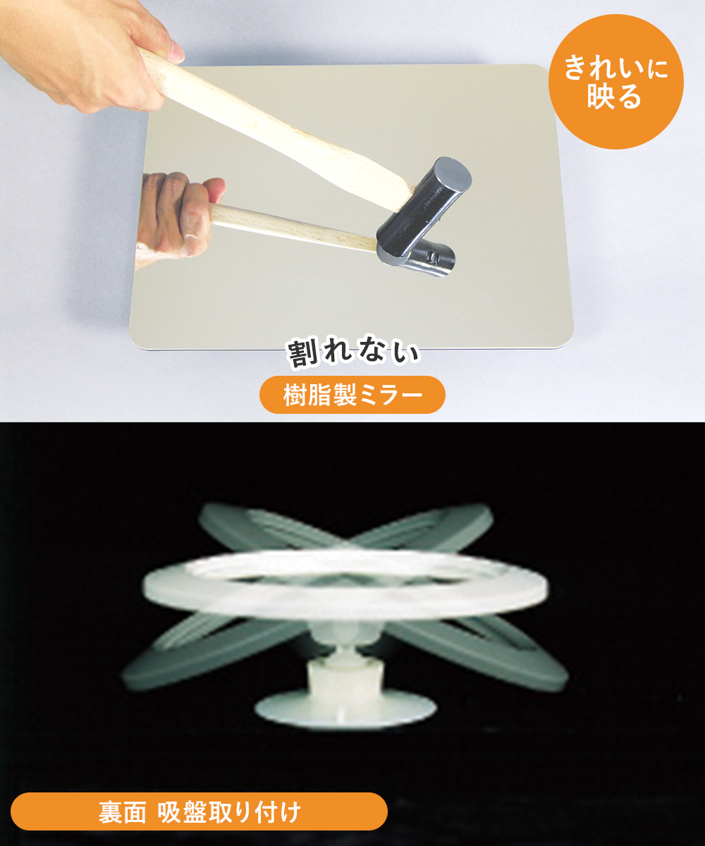 樹脂製のミラーの採用で軽くて割れない、災害時にも安心・安全な「割れない鏡」。