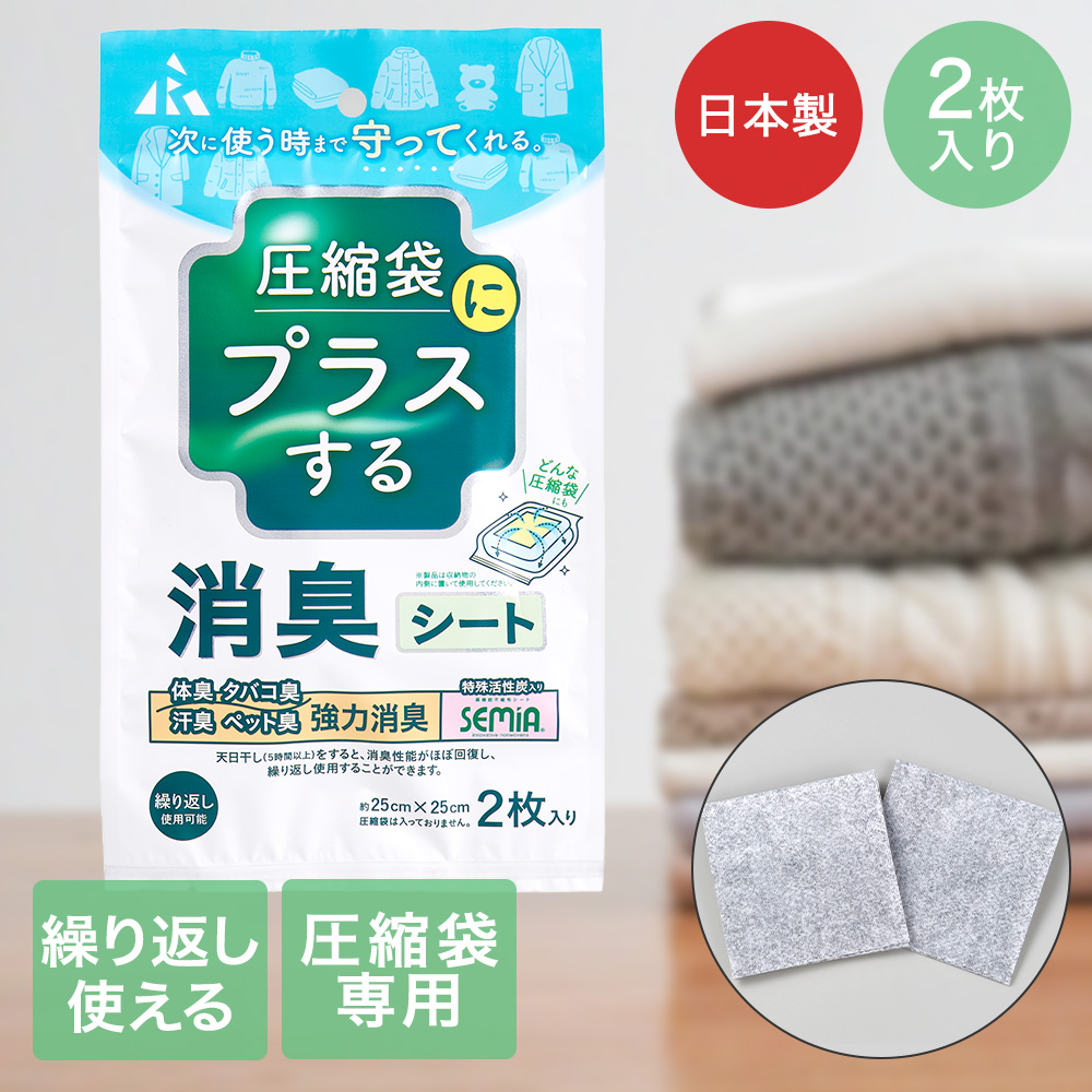 圧縮袋にプラスする 消臭シート 圧縮袋用 2枚入り アール | 圧縮袋 圧縮 消臭 圧縮収納 布団圧縮 布団 布団収納 収納 ふとん 衣類 洋服 セーター 臭い対策
