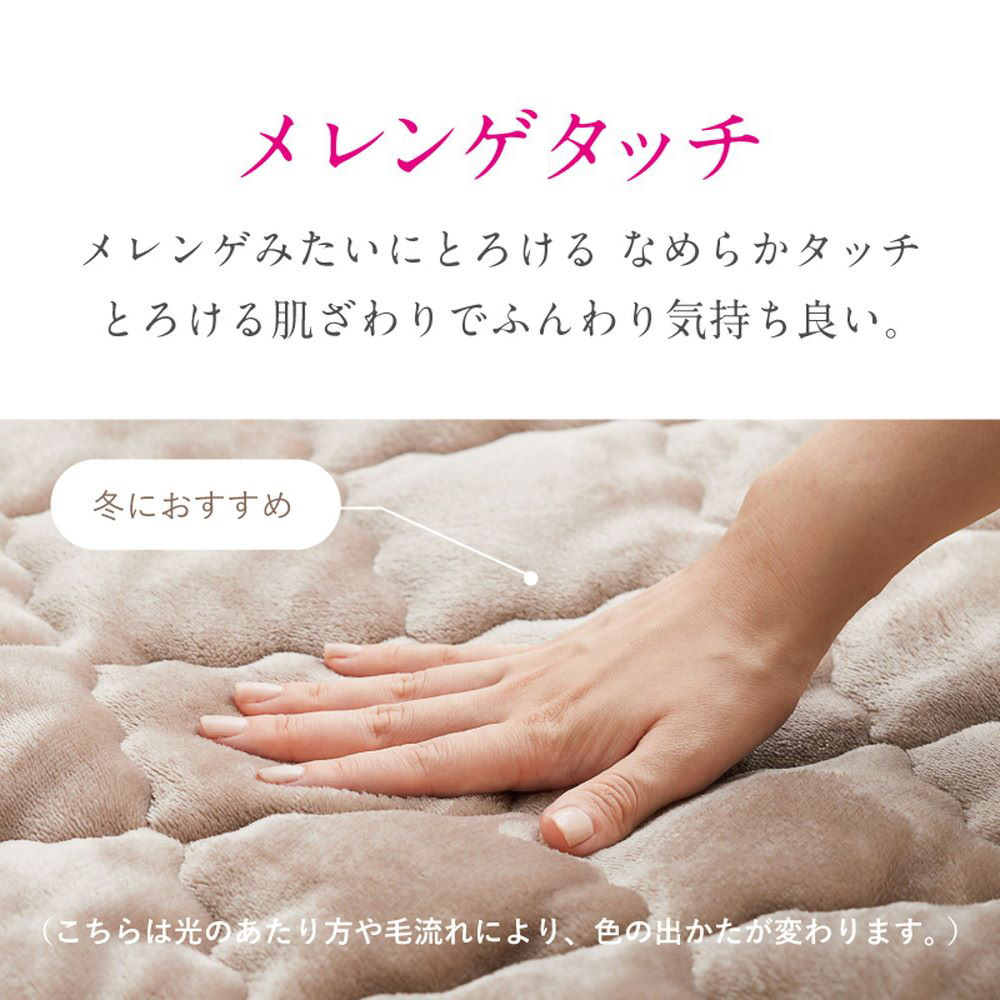 敷きパッド 表面:ポリエステル100%(フランネル) 中材:ポリエステル100% 裏面:ポリエステル100%(ピタ―ら)
