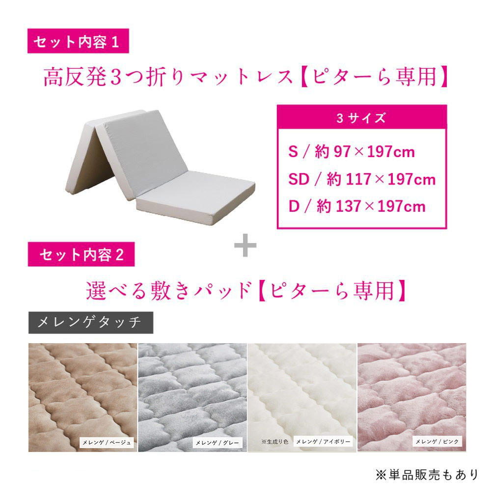 三つ折り高反発マットレスとメレンゲタッチの敷きパッドの2点セット。