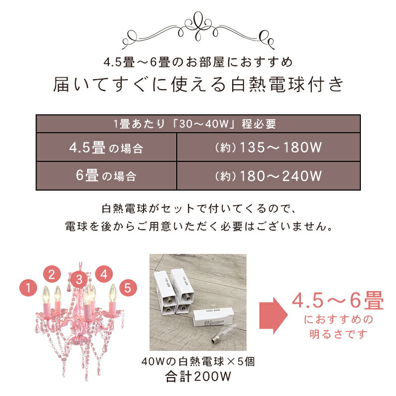 ■組立式■ソケット部+チェーン長:45cm■電球5個付(E17/40W)
