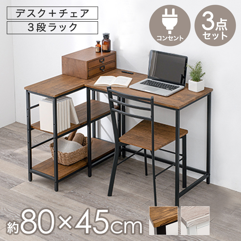 デスク・チェア・3段ラックの3点セット。