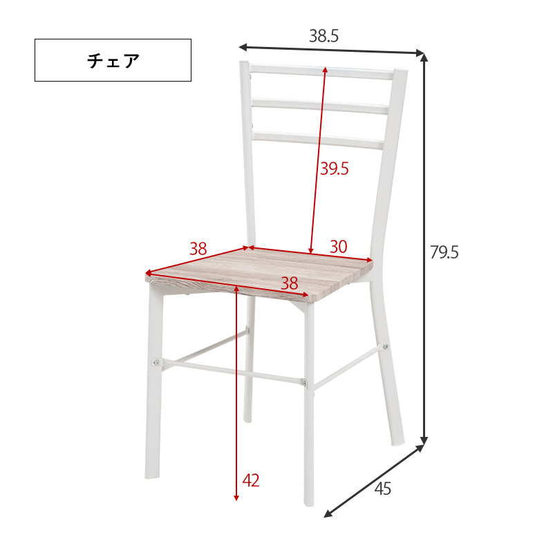 サイズ:デスク:(約)幅80×奥行45×高さ72cm、チェア:(約)幅38.5×奥行45×高さ79.5×座面高42cm、ラック:(約)幅75×奥行30×高さ72cm
