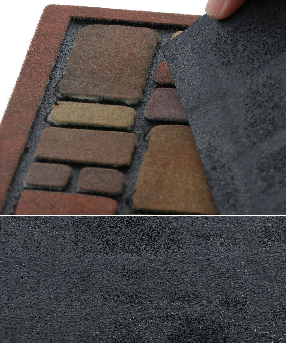 表面はポリエステルで吸水性がよく、裏はゴム製で雨で濡れても滑りにくい。