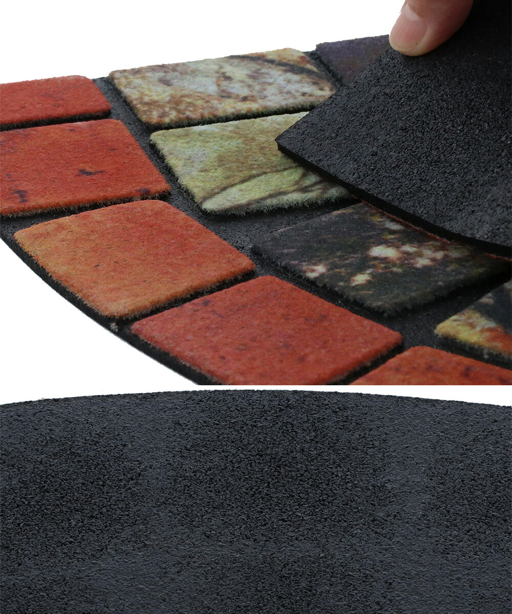 表面はポリエステルで吸水性がよく、裏はゴム製で雨で濡れても滑りにくい。