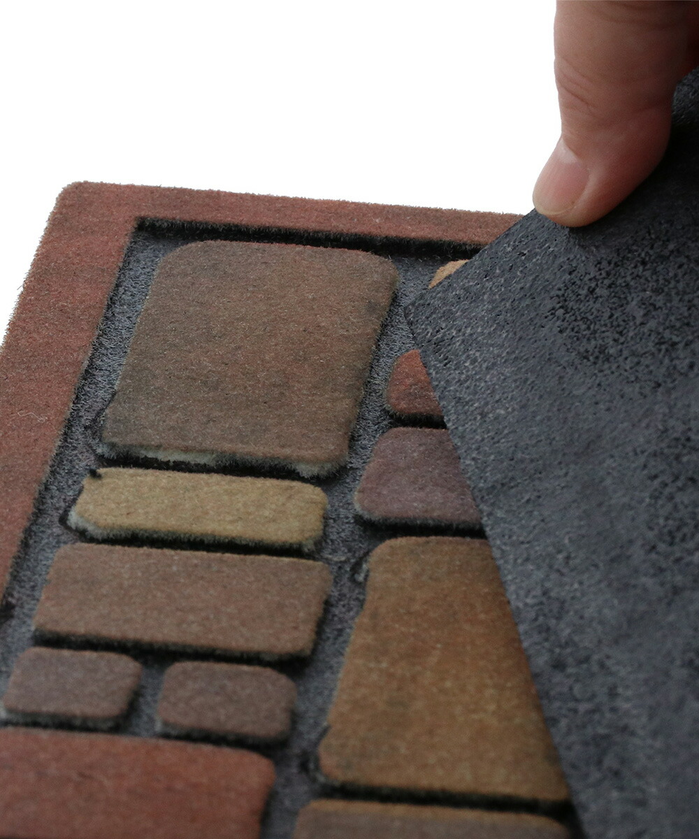 表面はポリエステルで吸水性がよく、裏はゴム製で雨で濡れても滑りにくい。