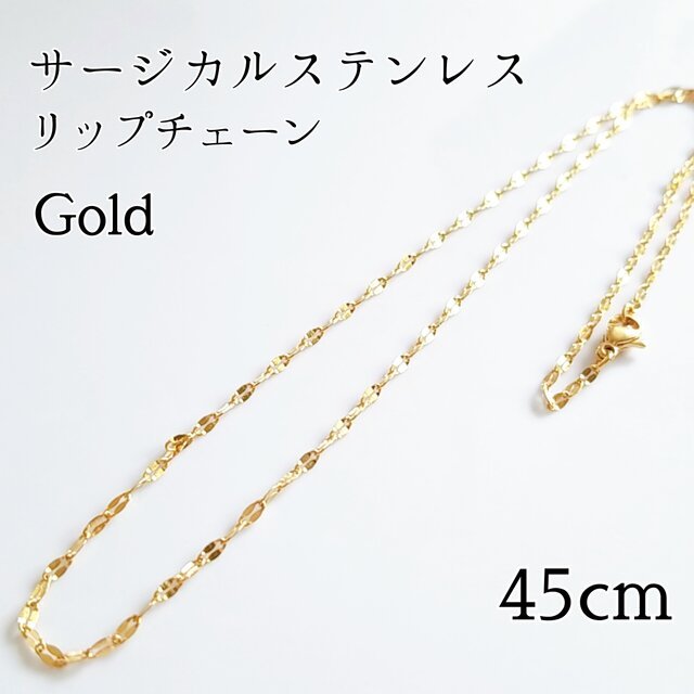 <送料無料>サージカルステンレス リップチェーン/ペタルチェーンネックレス◆ゴールド
