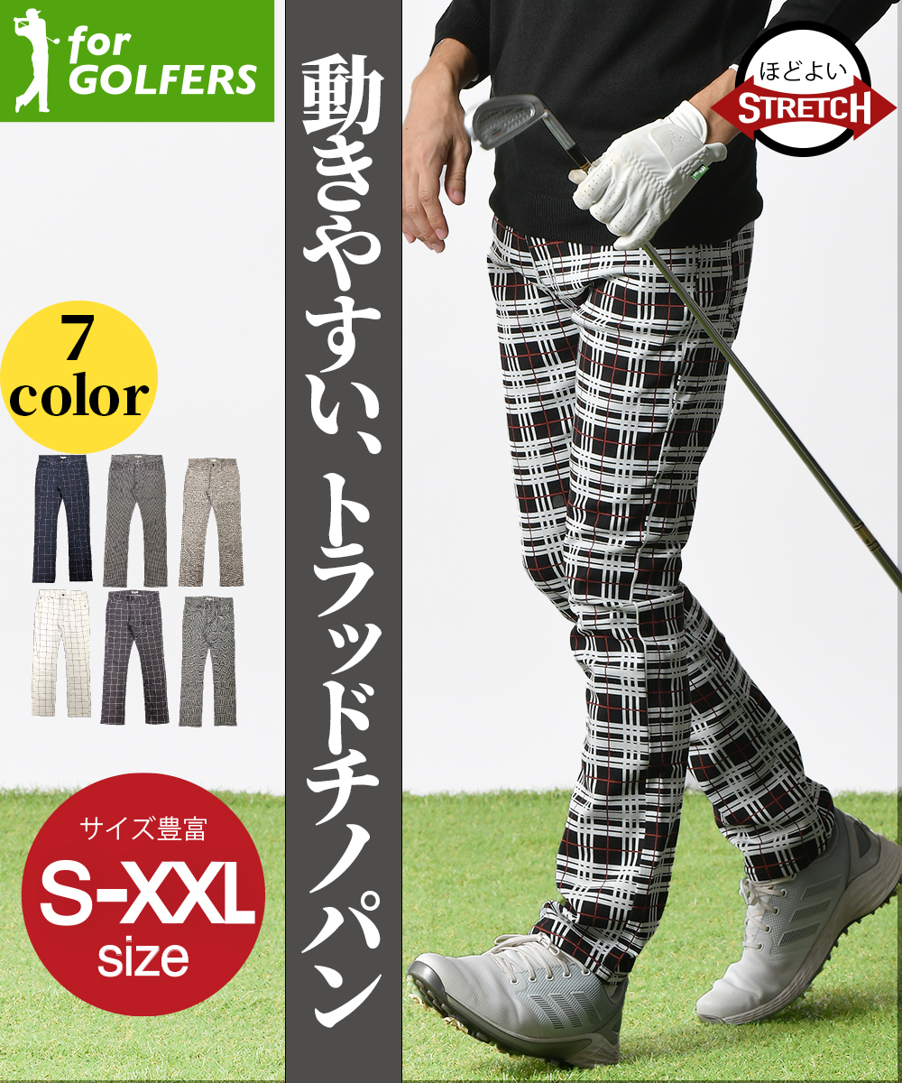 ゴルフウェア ゴルフパンツ ゴルフ 柄パンツ チノパン チェック ストレッチパンツ スキニー チェックパンツ メンズ パンツ チノ チノパンツ スリム ストレート