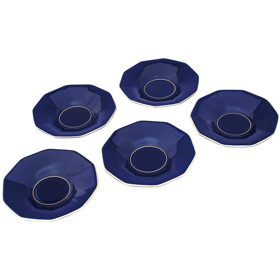 香蘭社の代表的な色である、深く美しいルリ色のシンプルな十角形の茶托5枚セットです 。