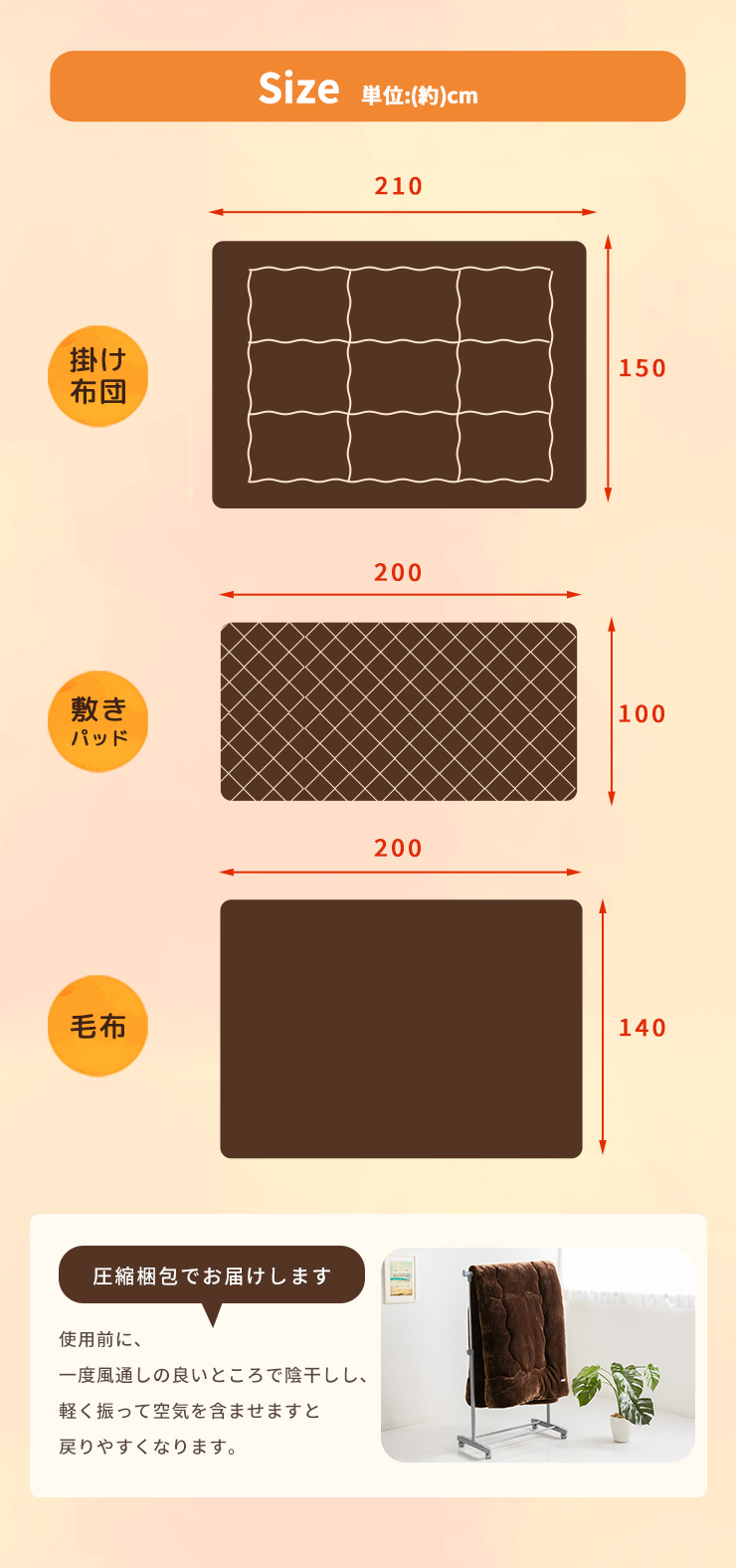 掛け:(約)150cm×210cm