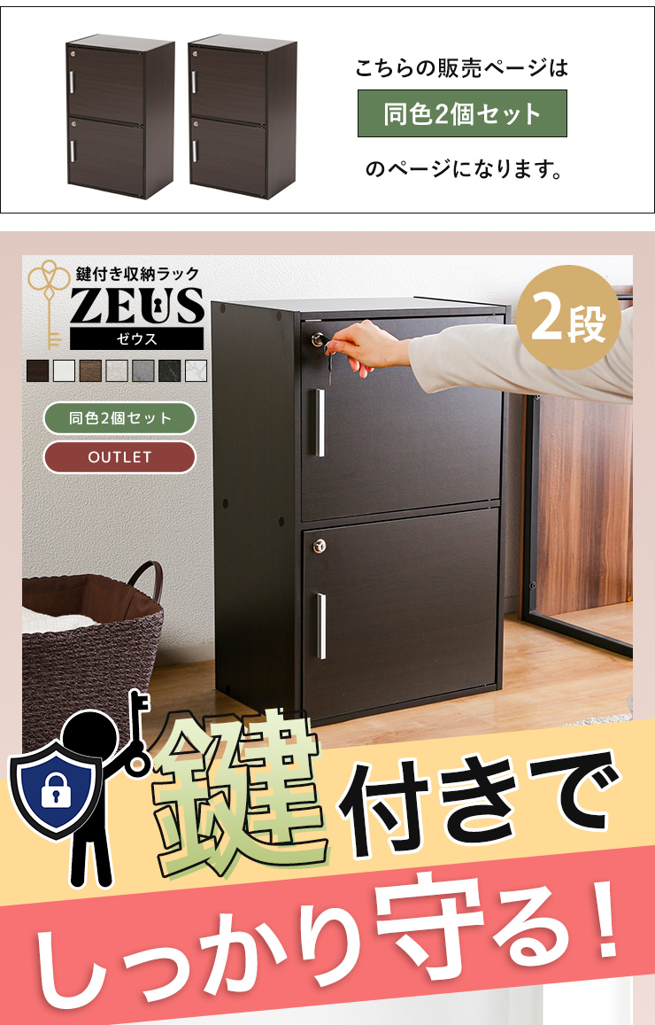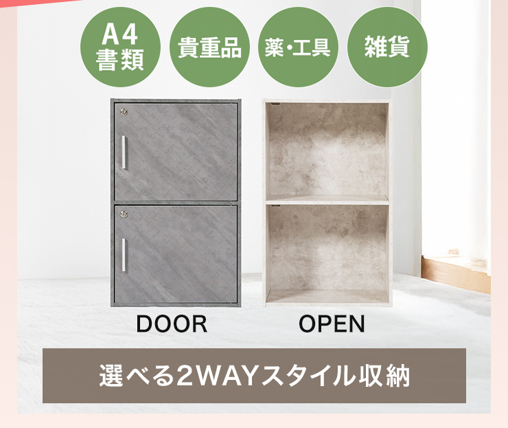 収納ボックス 2個セット 収納棚 鍵付き 扉付き 2段ボックス ラック 鍵付き扉 収納ラック 収納家具 シンプル